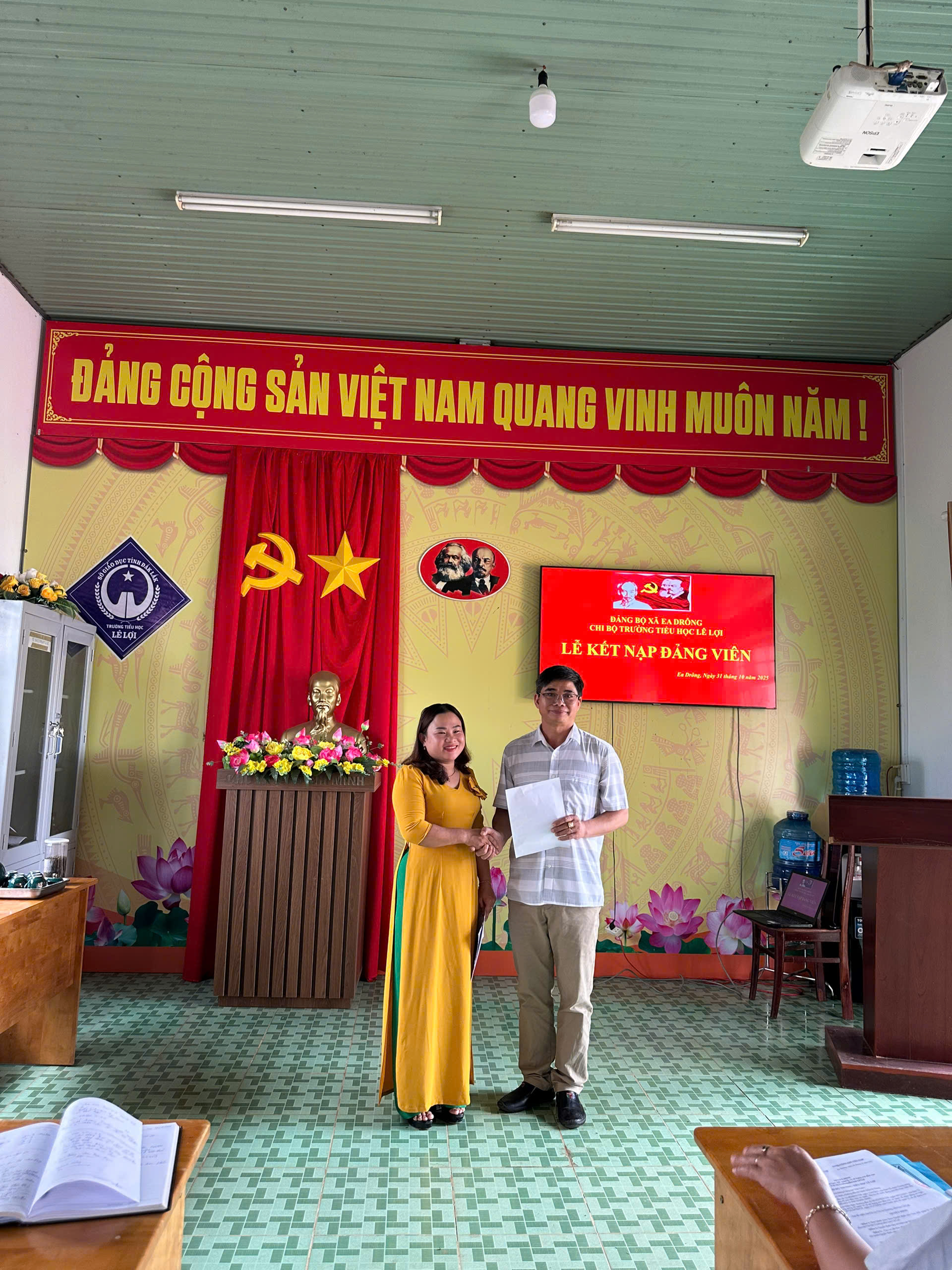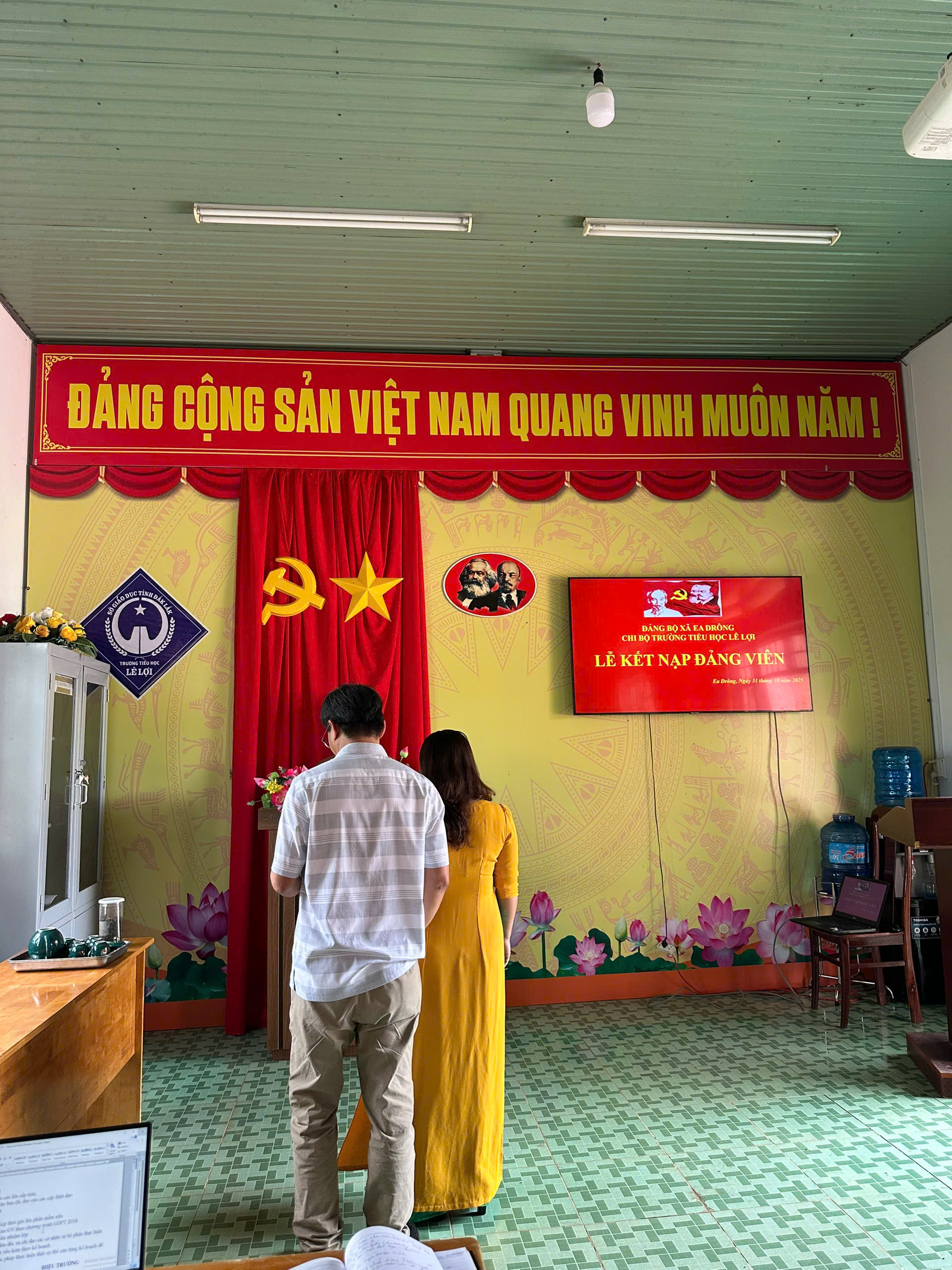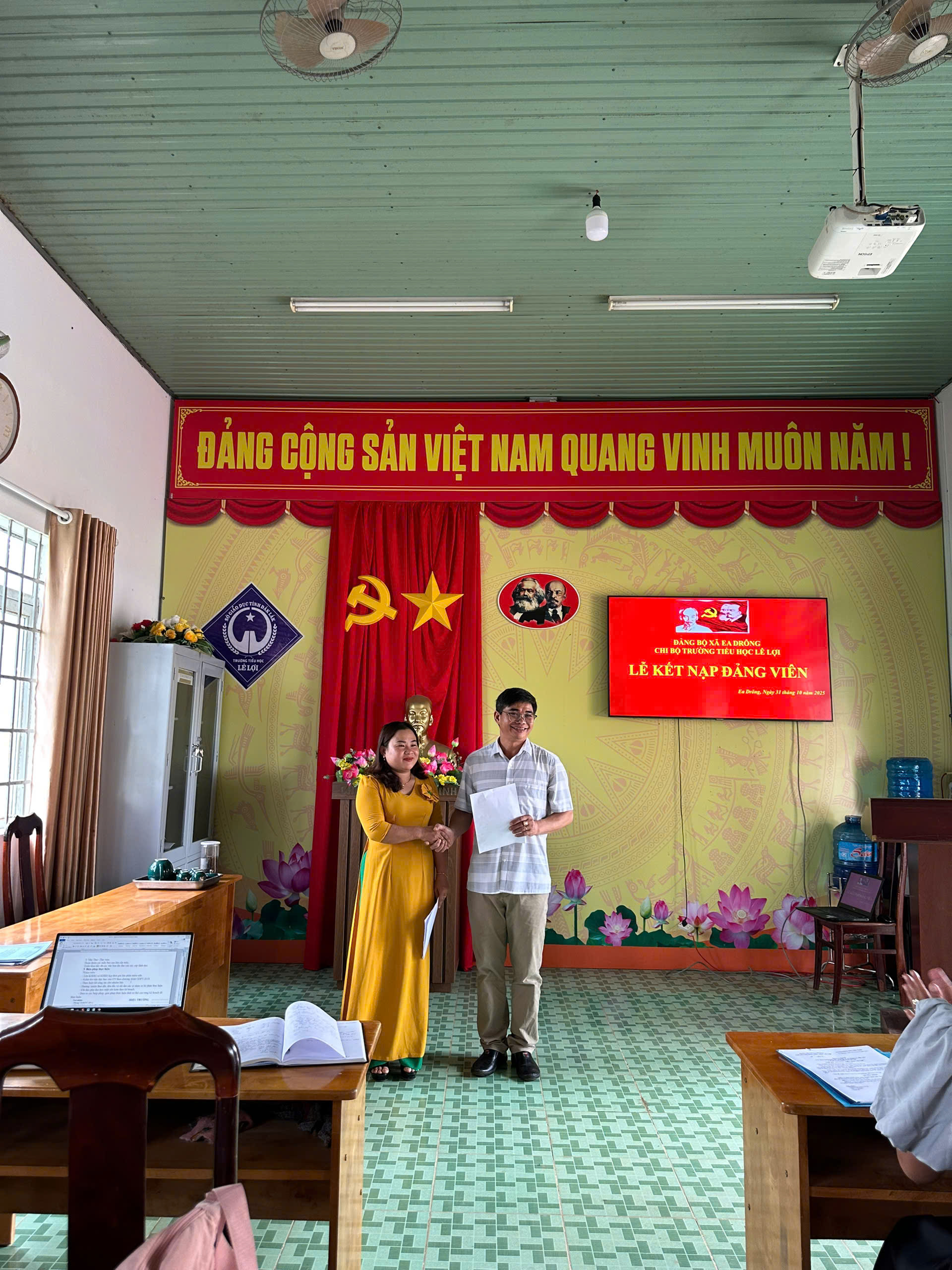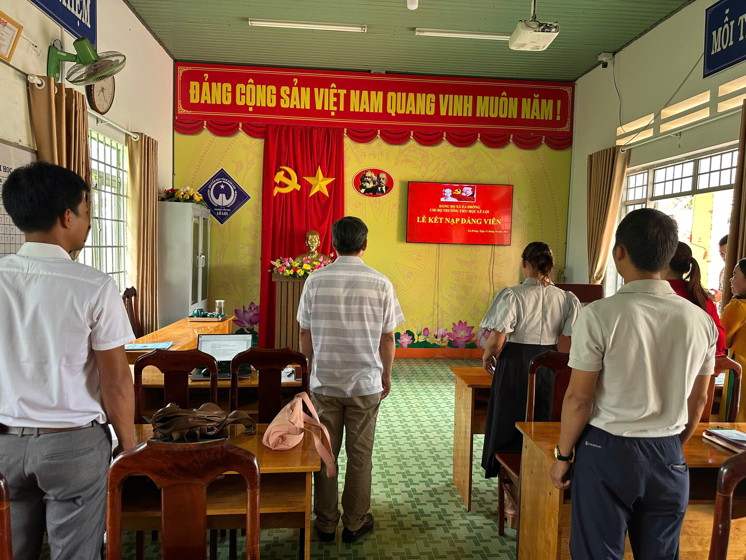 “Hôm nay, Chi bộ trường Tiểu học Lê Lợi long trọng tổ chức Lễ kết nạp Đảng viên mới cho đồng chí Nguyễn Thị Luyến. Đây là dấu mốc quan trọng ghi nhận quá trình rèn luyện, phấn đấu bền bỉ của đồng chí trong công tác chuyên môn và trong mọi hoạt động của nhà trường.